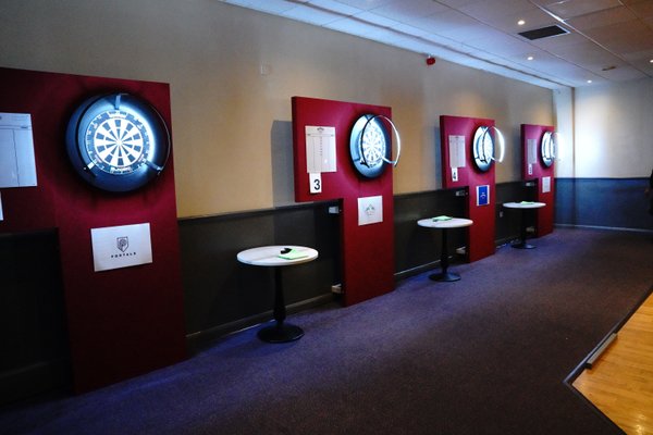 We also have an excellent darts competition setup featuring eight floor boards and a stage setup with big screens.